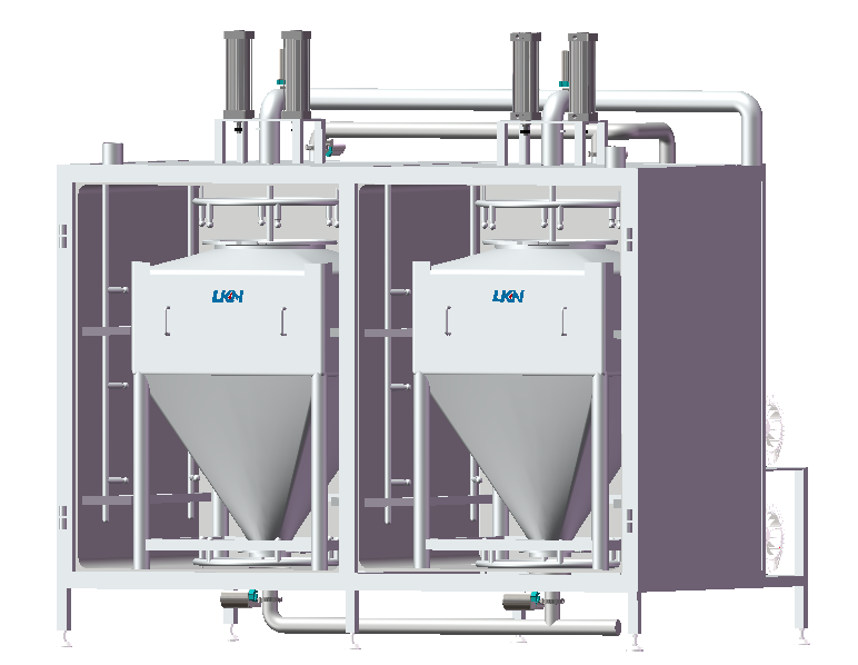 優(yōu)康恩自動化料系統(tǒng)用于對粉料和其它配料進行乳化和水化的混料系統(tǒng)設備。其中真空混料機可在密閉真空容器下進行高速剪切乳化混合綜合產品、各種粉末和液體等,每小時化粉量可達到3T-5T。優(yōu)康恩自動化料系統(tǒng)可利用真空作用將配料輸送到化料設備中,省去了操作工承擔這項繁重工作的需要。